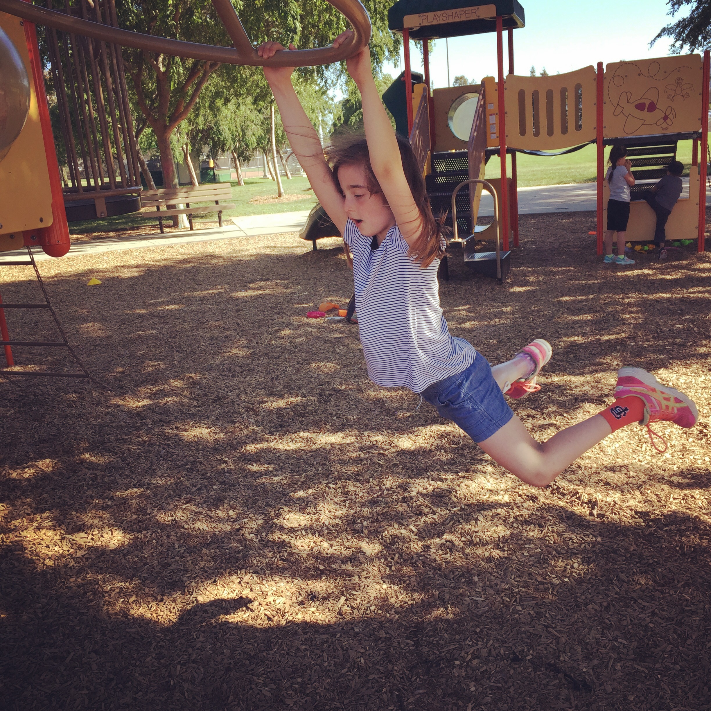 afoaShe wouldn’t be Sporty if she relaxed, took it easy, and let her foot rest. At least she’s wearing her AFO for this gravity defying activity! 🙈