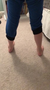 We haven’t been to Dr Fluffy Unicorn since August. This is the longest we’ve ever gone between appointments, we don’t go until June. In fact, I don’t think he knows we’re moving a few weeks after we see him, that’s how long it’s been since we’ve seen him. I must say I’m starting to get ants in my pants to have her feet checked. I haven’t been entirely happy with how they look but she’s rocking softball season (she ran from second to home plate the fastest I’ve ever seen her run last week) and she has no pain, so am I looking for trouble where there isn’t any? Do I need to learn that her feet are never going to look perfect or normal? That maybe, where she’s at right now, that’s her perfect? I was on one of my Facebook Clubfoot groups earlier in the weekend and someone asked for pictures of kids’ corrected feet. Sporty happened to be awake and not running around at the time so I snapped these photos of her feet. I got a couple of comments about how perfect her feet looked and it got me thinking about how maybe I just need to lower my standards and realize that if she’s living the life she loves (ie running around like a crazy person) and she’s pain free, doesn’t that count as perfect? Maybe our perfect is a pain free, active life. I just worry cosmetically as she gets older that people will notice her feet look different. Especially as she starts a new school this year, in a new town, with people who don’t know her fight story.