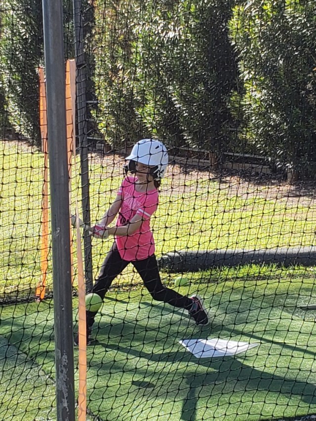 The teams ended up in a tie but we had so much fun watching all of the older girls hit. Sporty was the only 10U player there. The event also collected food for a local food bank so it was fun and meaningful at the same time.