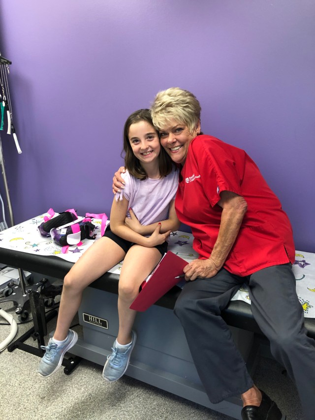 Then it’s time for Dr Fluffy Unicorn. “I heard a dirty rumor that this is goodbye.” “You’ll just have to come to London for treatment. Sporty, how’s everything going?” That was the blow, I traveled to see him because of that very simple question. Because for the last 2 years, he has put Sporty’s treatment in Sporty’s hands. Not what I see, or what I think but what Sporty feels and he has taught her to communicate and advocate for herself and that’s a really rare thing for a doctor to put that level of trust in a pre-teen. But they’re her feet, it’s her pain, and that’s how it should be. Even pediatricians address me and not her and she’s shy and doesn’t communicate what she’s feeling but with Dr Fluffy Unicorn, she opened up about her pain, about being afraid of another doctor touching her feet and messing them up and her never being able to play softball. That she wants to play in college and in the Olympics and if someone other than him treats her, she’s worried that may never happen. Everyone in the room was crying.