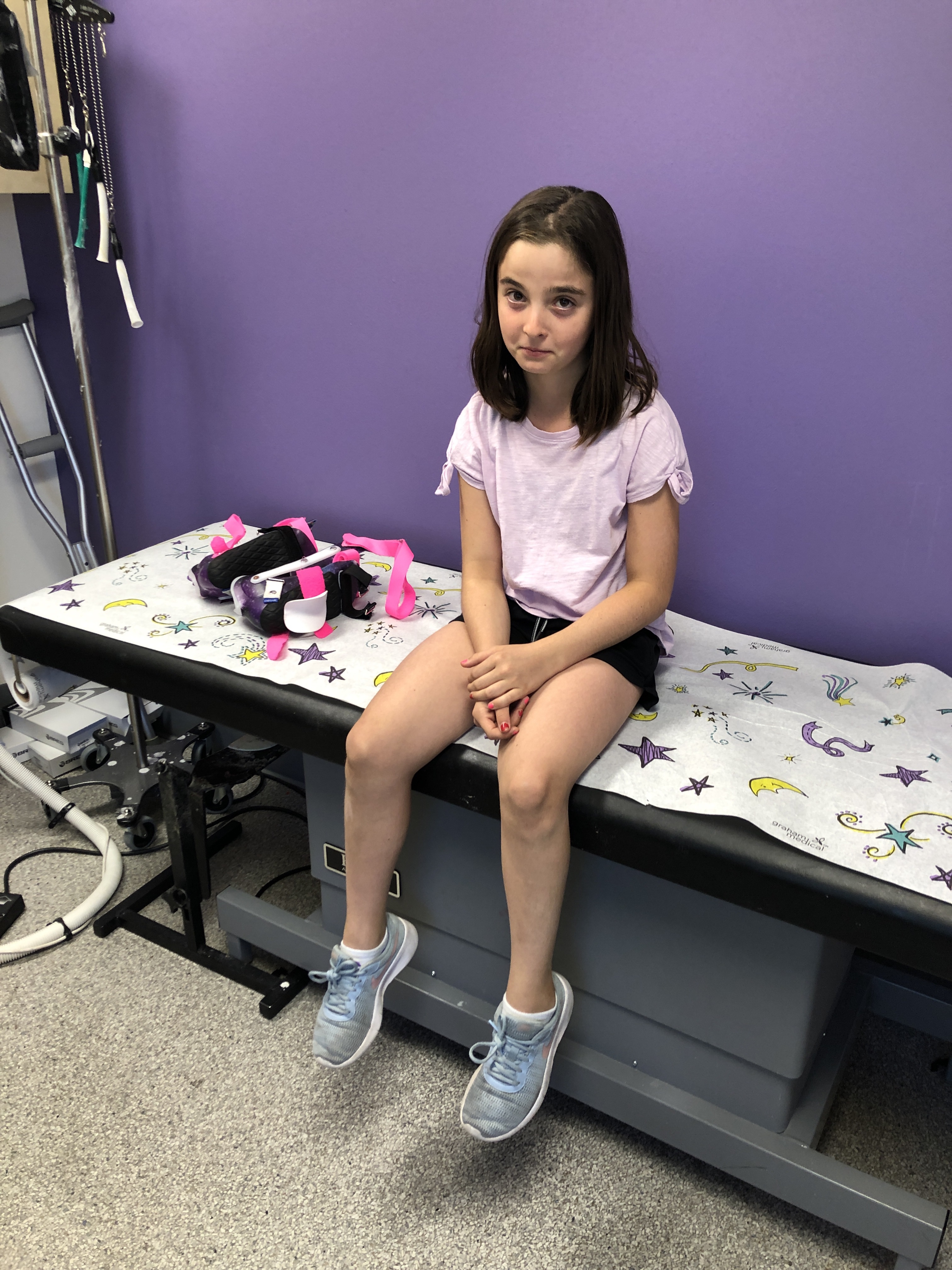 Then it’s time for Dr Fluffy Unicorn. “I heard a dirty rumor that this is goodbye.” “You’ll just have to come to London for treatment. Sporty, how’s everything going?” That was the blow, I traveled to see him because of that very simple question. Because for the last 2 years, he has put Sporty’s treatment in Sporty’s hands. Not what I see, or what I think but what Sporty feels and he has taught her to communicate and advocate for herself and that’s a really rare thing for a doctor to put that level of trust in a pre-teen. But they’re her feet, it’s her pain, and that’s how it should be. Even pediatricians address me and not her and she’s shy and doesn’t communicate what she’s feeling but with Dr Fluffy Unicorn, she opened up about her pain, about being afraid of another doctor touching her feet and messing them up and her never being able to play softball. That she wants to play in college and in the Olympics and if someone other than him treats her, she’s worried that may never happen. Everyone in the room was crying.