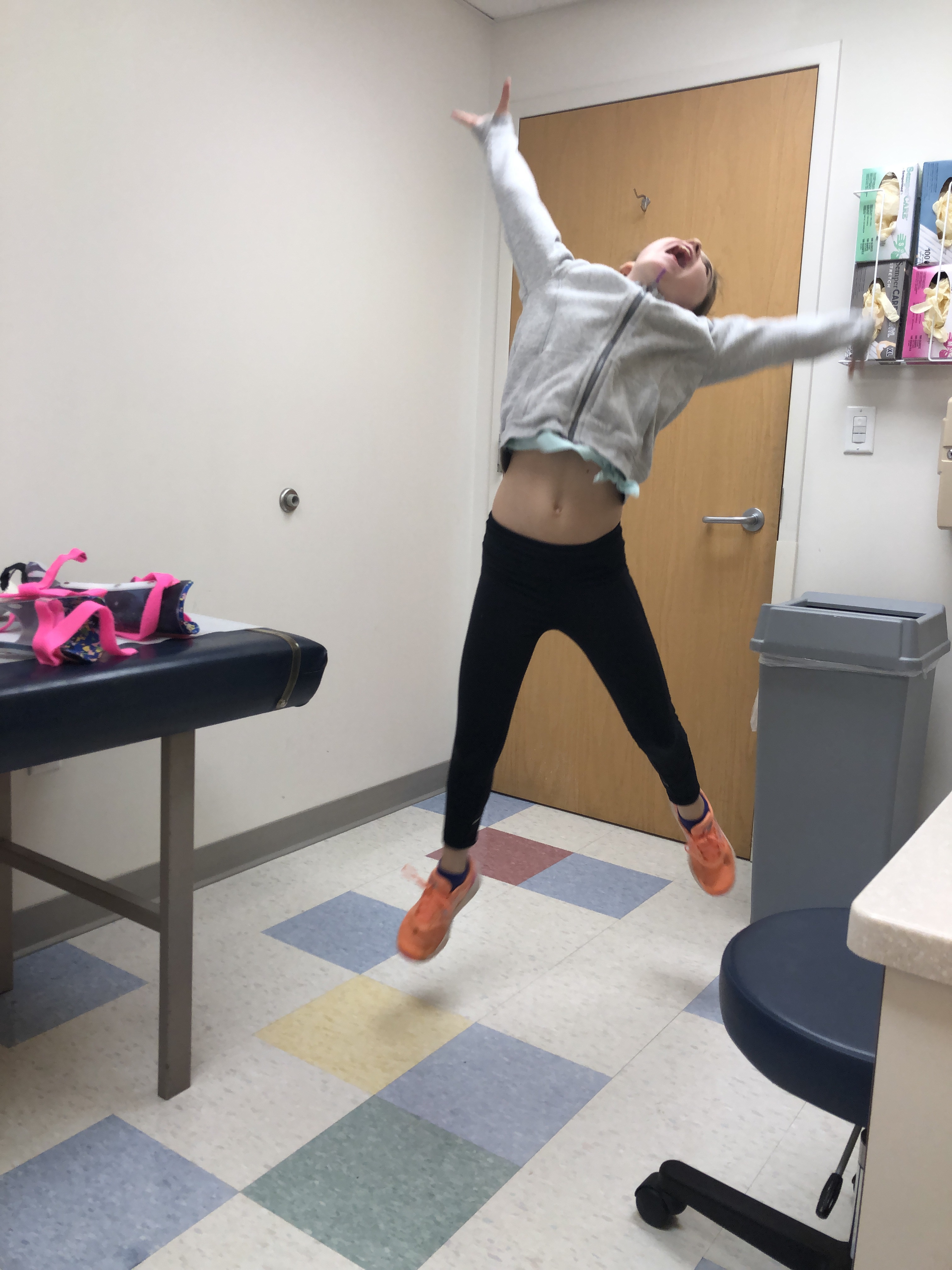 Then the exam and her Achilles are really tight. X-rays followed and fortunately the structure of her feet are near perfect. Like non-Clubfoot perfect. So that’s the one positive of the appointment. So it’s an Achilles issue. We talked about options. A repeat Achilles lengthening came up for the future (she had this done at 3 months) and then the water works really started. If she had surgery, she’d miss softball and lose her spot and softball is her life. Dr Fluffy Unicorn looked at her and said “Sporty, you’re my one chance at being on the cover of Sports Illustrated. I’m not going to let anyone mess you up!”