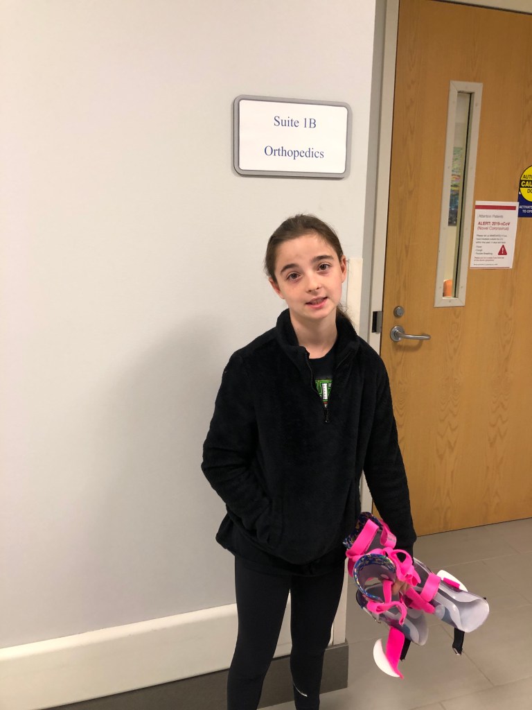 Fast forward a week and Poppa Bear made a comment that her left foot looked like it was turning in, I had noticed it for a while but tried to convince myself I was being crazy knowing she had an appointment. A decade later and I still stress and over analyze her feet leading up to appointments. Then we were at the beach in San Diego and she was running barefoot and I just knew we would have a rough appointment, In addition to saying goodbye, I knew the news wouldn’t be spectacular, because she’s also been complaining that her left Achilles is giving pain after running at softball practice and it’s turning in, I’ve been around Clubfoot long enough to know that’s not a good equation.